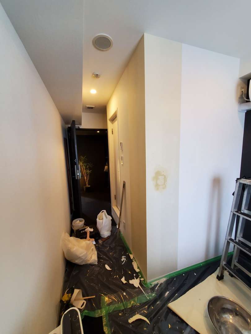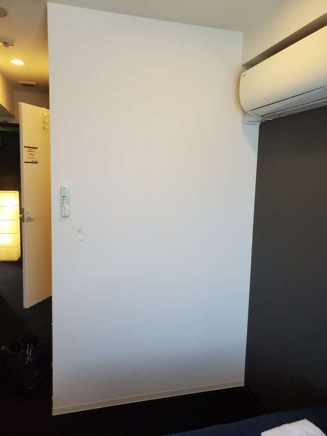 某ホテル様の客室で宿泊のお客様が誤って壁面に穴をあけてしまいましたので